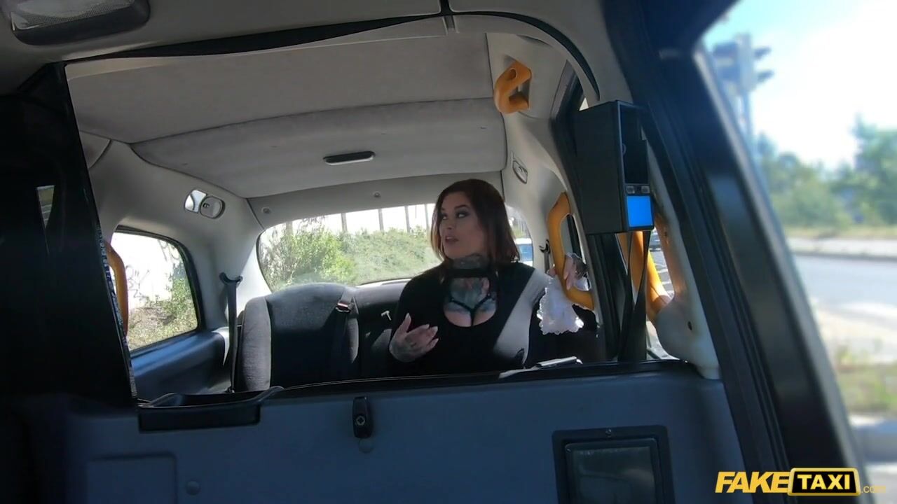 Sex Taxi Sabien Demonia in Fishnets gets fuck by a big cock with her big natural tits out