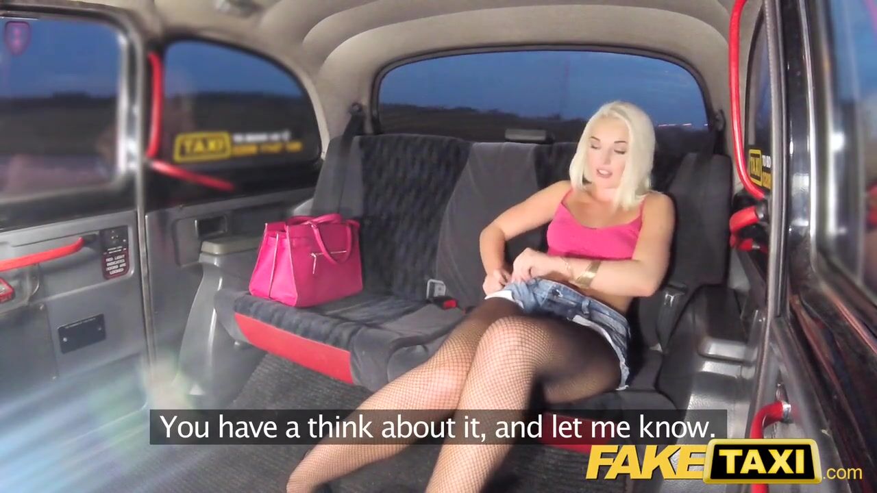 Sex Taxi Sexy blonde in tight denim shorts with fishnets and heels