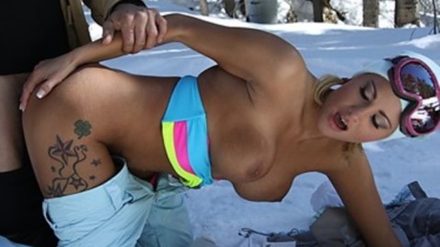 Sexy blonde skier Jessica Nyx gives her BF an amazing suck & fuck